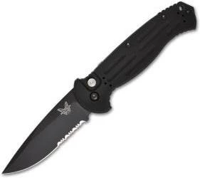The Benchmade AFO II automatic knife is an evolution of the 9050 AFO, one of the most practical automatic knives ever made. The improvements made to this knife are substantial. The knife is large, sturdy and built for use with an improved push button lock that is 30% stronger than the original. The AFO 2 has an over-sized firing button for easy operation, even with gloves. The 154-CM stainless steel blade deploys quickly and the 6061 T-6 black grey aluminum body is an ideal size for a rock-solid grip and now includes a steel glass breaker tip. The open backspacer design makes cleaning and maintenance easy. The sliding safety on the back does its job flawlessly. The AFO II is a truly superior knife design in every respect.