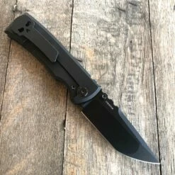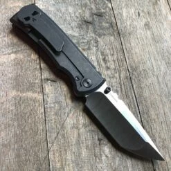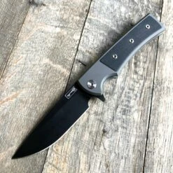 This Liberation Street model has a gray titanium handle with a Black canvas micarta inlay. Its blade is made from S35VN steel with a lightly tumbled black finish.