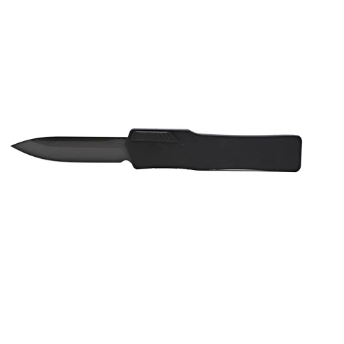 This Cleric OTF automatic has an aluminum handle and blade with a black DLC finish and Tactical black hardware. It offers a heavy duty build with a clean fit and finish, and a fierce double action automatic opener. The handle has a front loaded thumb slide for ease of use and subtle contouring for a substantial grip. It has compound ground tanto blade and includes a drawstring Heretic Knives pouch.
