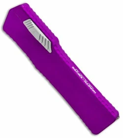 This Cleric OTF automatic has a purple aluminum handle and a double edged dagger blade with a stonewashed finish. It offers a heavy duty build with a clean fit and finish, and a fierce double action automatic opener. The handle has a front loaded thumb slide for ease of use and subtle contouring for a substantial grip. Item includes a drawstring Heretic Knives pouch.