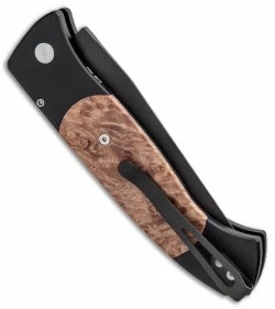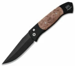 This Brend 3 Auto features a black DLC finished blade and black anodized aluminum handle with maple burl inlays.