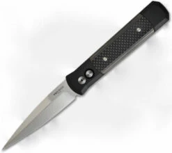 The design of the Protech Godfather automatic was influenced by the original Italian “Stilleto” knives. It features Protech’s signature bayonet style blade, a slim handle and premium materials. The Godfather utilizes a coil spring for impressive push button action that never grows old. The build, fit and finish of the Godfather is exceptional, something that is true of all Protech knives.