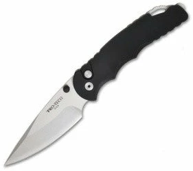 The Tactical Response 4 is a manual action knife for those that prefer a non-automatic folder. The TR-4 features a 4″ stonewash finished 154-CM steel blade with a plain edge. The ergonomic handle is black anodized T-6 6061 aluminum. The TR-4 has a tip-up carry pocket clip on the back of the knife and includes a black nylon sheath.