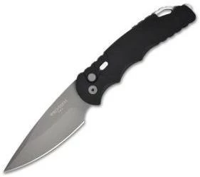The Tactical Response 4 is a whole new take on Protech’s popular Tactical Response line. It incorporates a much requested sliding safety (on the front of the handle). The TR-4 features a 4″ bead blasted 154-CM blade (plain). The ergonomic handle is black anodized T-6 6061. The TR-4 is a knife that will not let you down. It fires hard, locks up like a rock (what else would you expect from Pro-Tech?) and feel great. The TR-4 has a pocket clip (tip up) on the back of the knife for easy carry. Also includes a black nylon sheath.